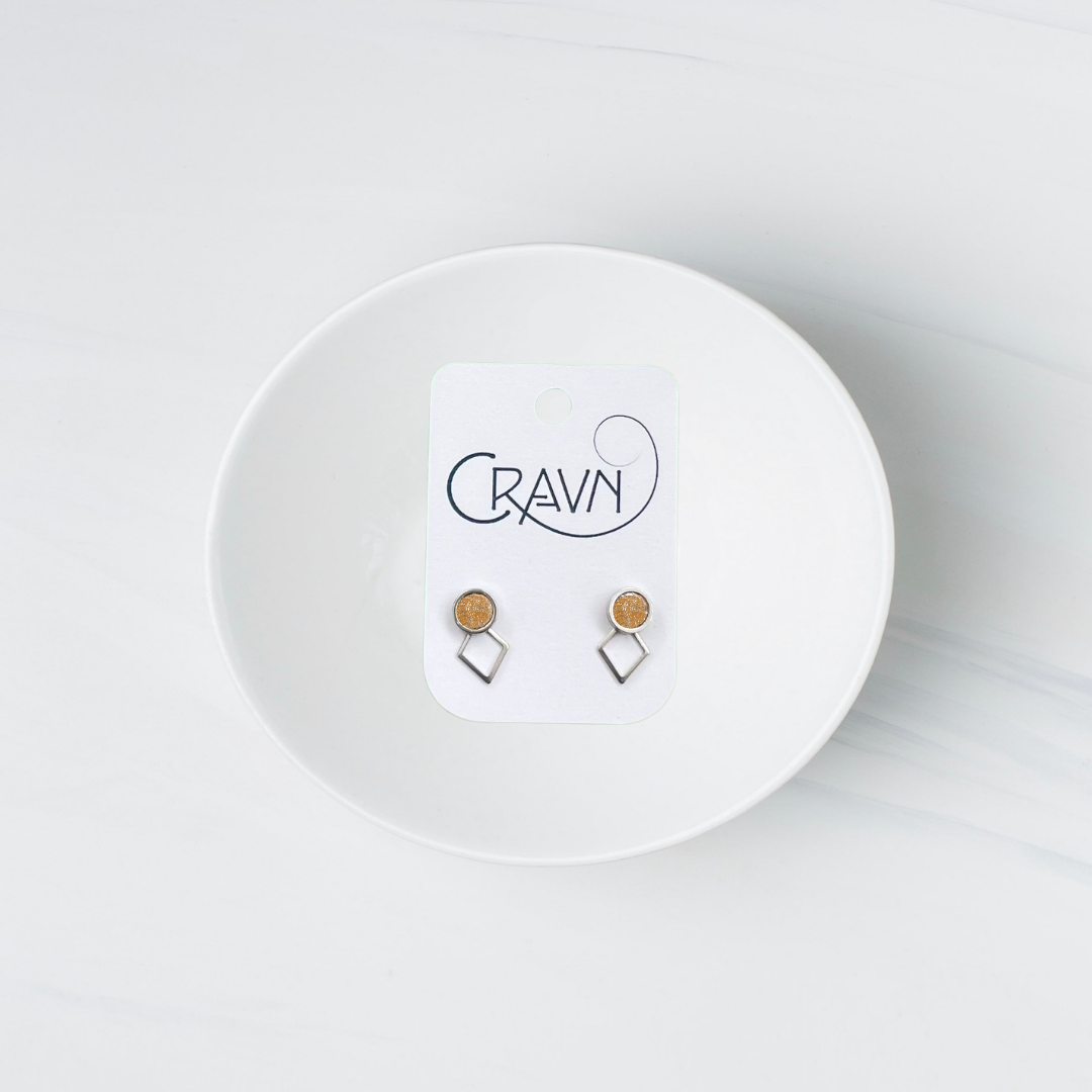 These lightweight and hypoallergenic earrings are a must-have for your jewelry collection! The interchangeable studs allow you to create 2 different looks, so you can always mix things up. Made with cork scraps and hypoallergenic stainless steel, these upcycled earrings are eco-friendly and stylish. The decorative parts can be removed and the earring can be worn as plain studs or you can switch which decorative element goes with which color earrings. So versatile and unique, you'll never get tired of wearing them!